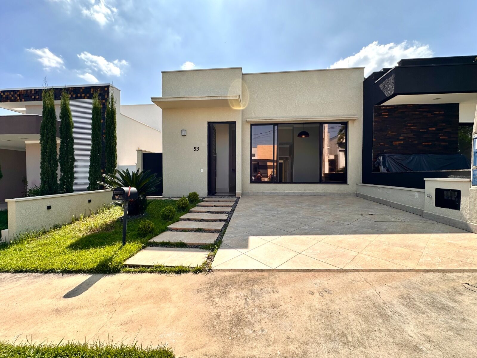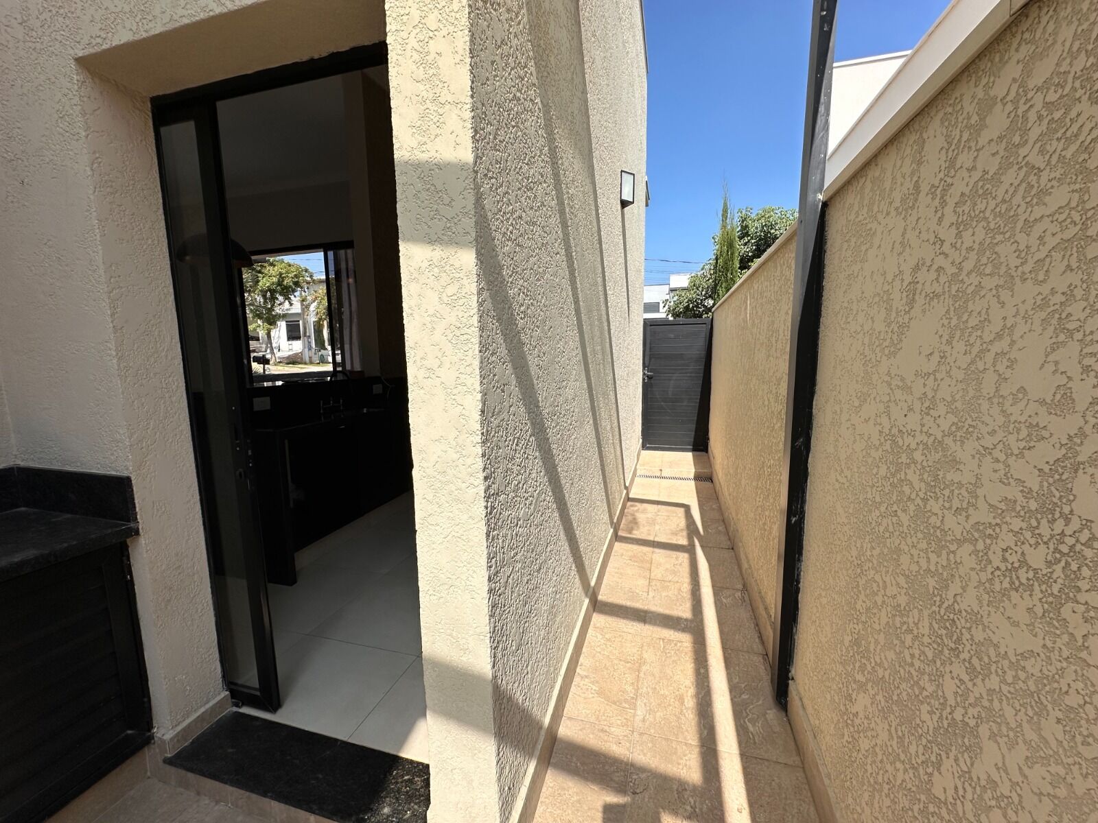 Tem garagem na frente e o corredor lateral da acesso a churrasqueira, lavanderia e quintal nos fundos.